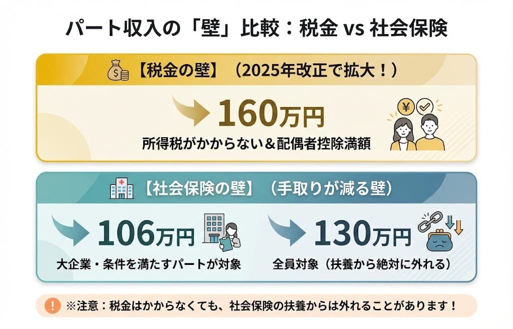 パート収入の「壁」とは|税金と社会保険の違い