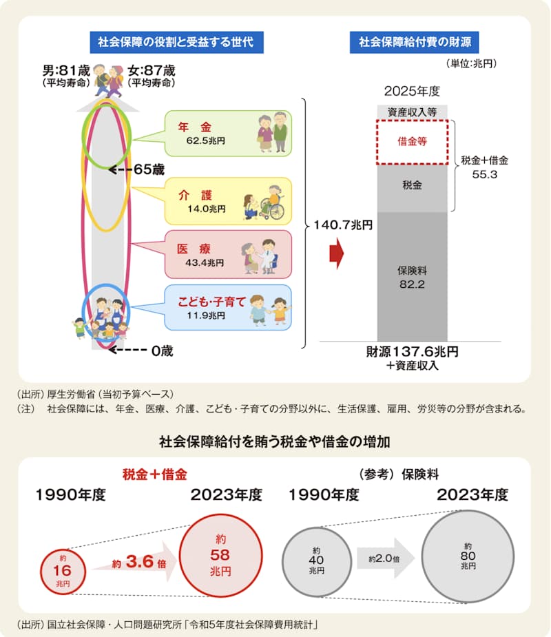 社会保険料だけでは費用を賄いきれず、税金や国の借金に頼っている状態です。このため、政府は社会保険の加入対象を広げ、より多くの人に保険料を負担してもらう方向で制度改正を進めています。106万円の壁の対象拡大も、その一環なのです。