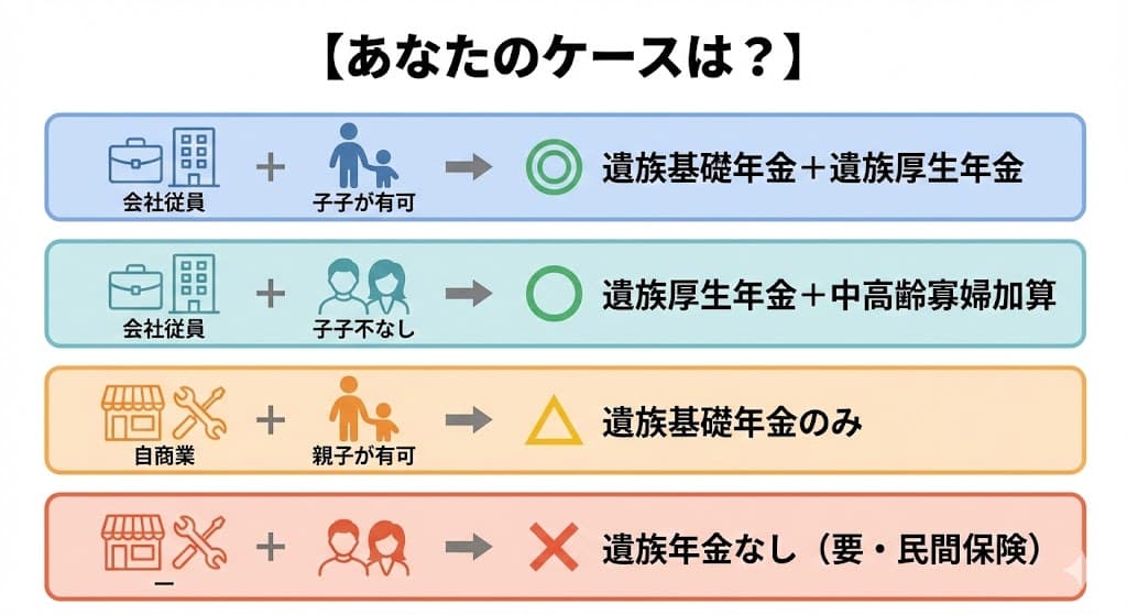 「子の有無」が受給額を大きく左右する。これが遺族年金を理解する上での最重要ポイントです。