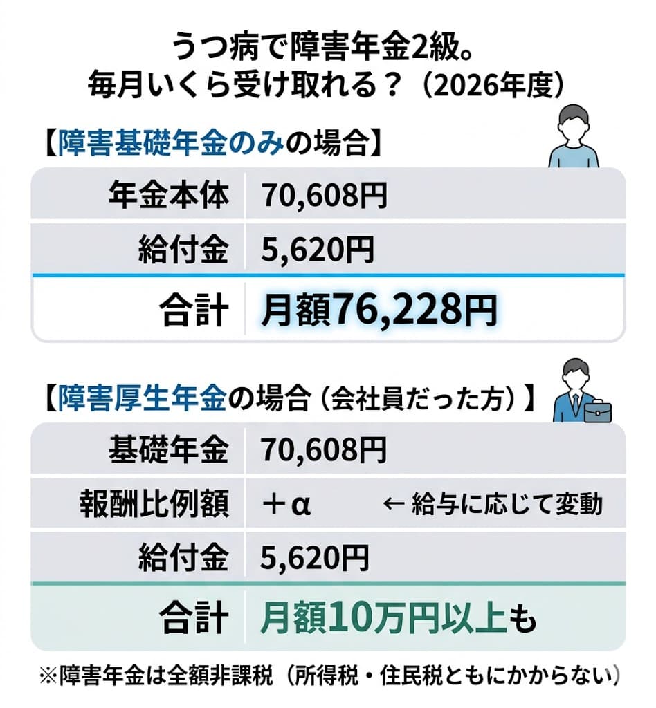 - 2026年度は2級で月額70,608円+給付金5,620円=月約76,000円