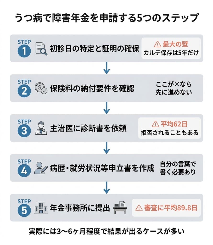 【うつ病で障害年金を申請する手順】