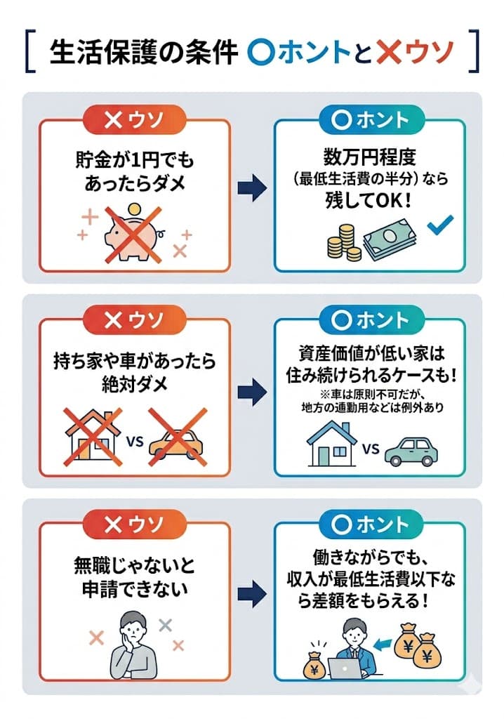 生活保護の4つの条件の「よくある誤解」
